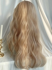 Blonde Under Bust Length Wavy Wig with Full Bangs
