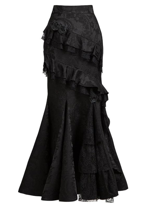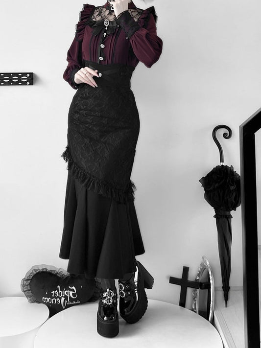 Black Gothic Trimming Lolita Flounce Elegant Mermaid Vampire