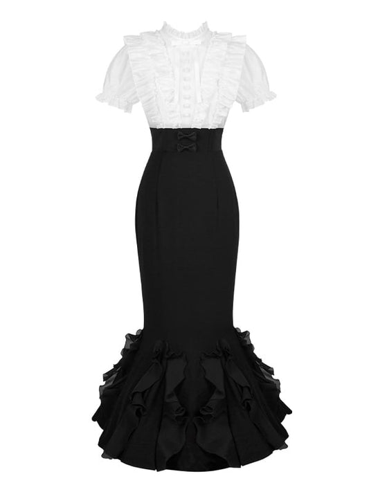 Lolita White Pieces Black Elegant Two Design Mermaid and Dress Waist Skirt Boned Fake Blouse