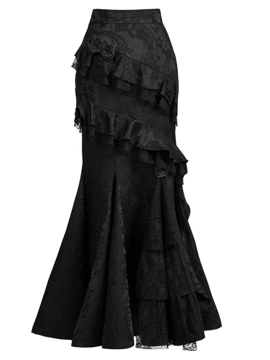 Lolita Trimming Mermaid Gothic Flounce Elegant Black Skirt