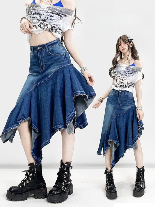 Mermaid Hem Asymmetrical Blue Y2K Skirt
