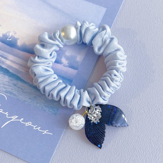 Beaded 7 Mermaid Charm Options Blue Scrunchie Decorated