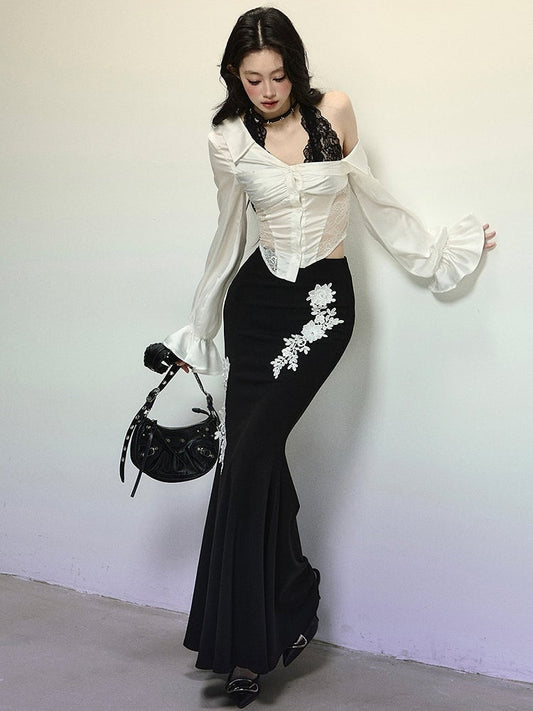 Black Elegant Gothic Lolita Flounce Trimming Mermaid Skirt