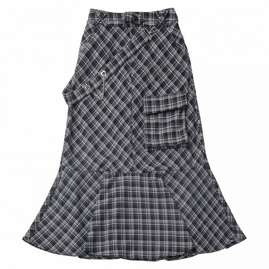 Ankle Black and White Plaid Pocket Length Mermaid Skirt Detail