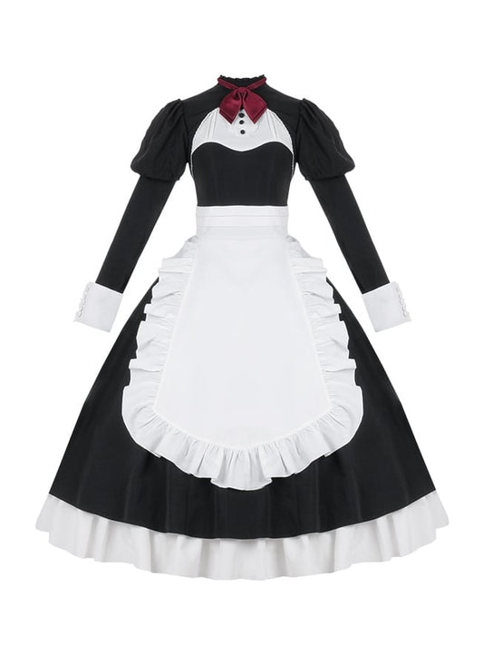 Black and White Juliette Sleeves Maid Apron Waist Lolita One Piece