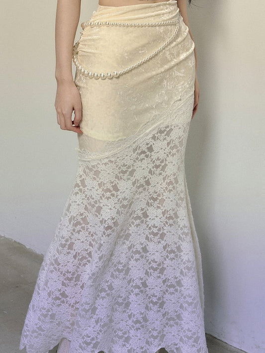 Apricot High Waist Lace Patchwork Mermaid Skirt