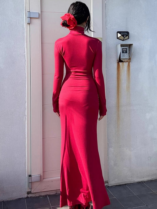 Gothic Red Coffin Cutout Cross Details High Neck Mermaid Skirt Maxi Dress