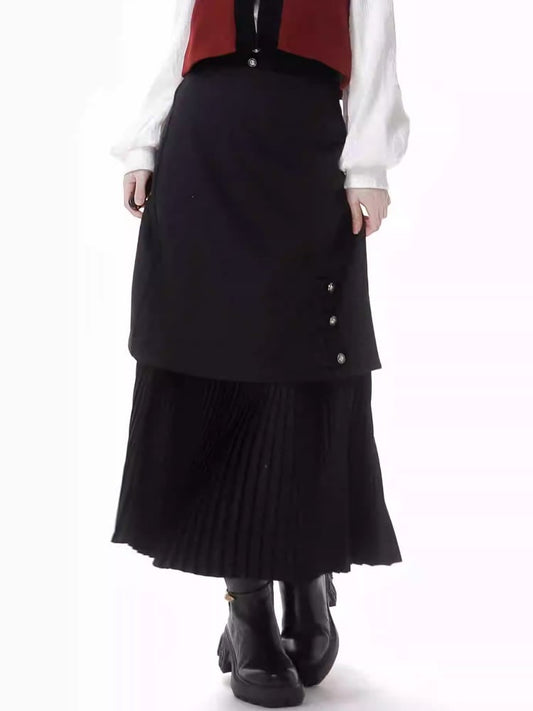 Black Midi Length High Waist Pleated Mermaid Slim-fitting Skirt
