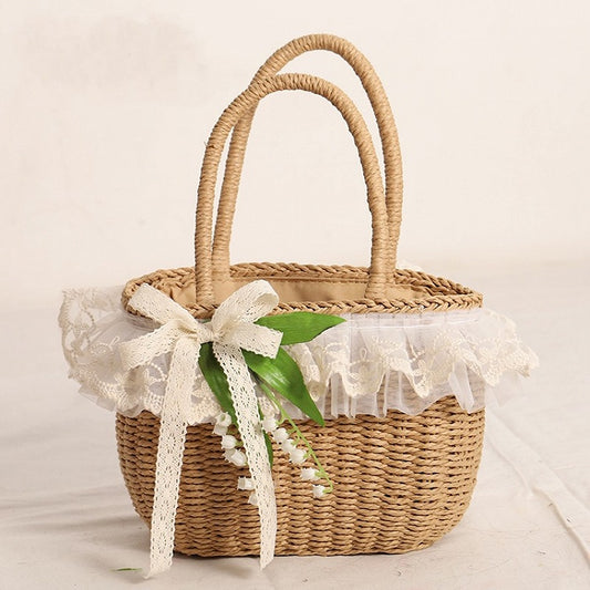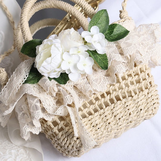 Trimmed Bowknot Handbag Lace Floral Straw Fresh Lolita
