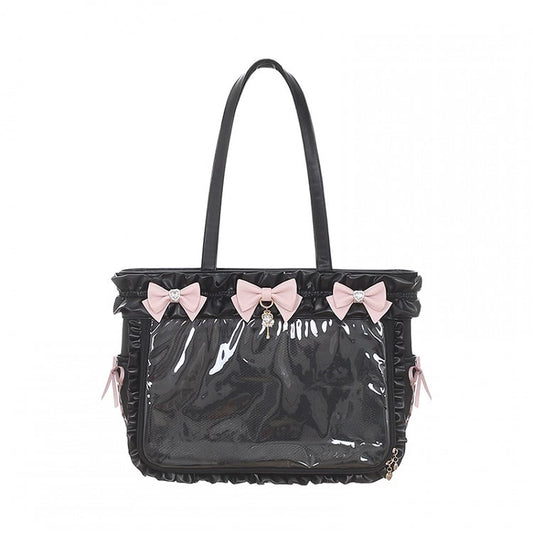Jirai Blue Leather Capacity in Decor with Large PU / Black Ita Light Multiple - Pink Kei Bag Bow