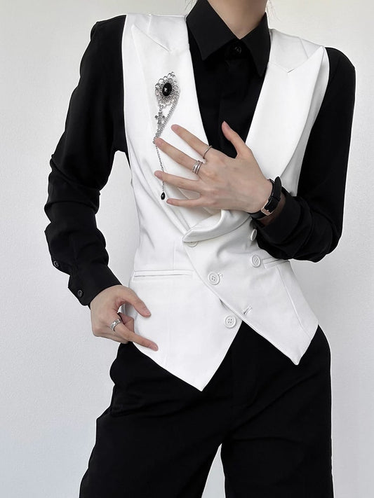 Asymmetrical Buttoned Placket Ouji with White Lolita Shirt Collar Vintage