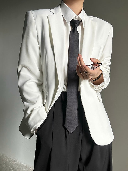 Unisex Lolita Lapel Notched with Ouji Buttons Blazer White Black Cuffs