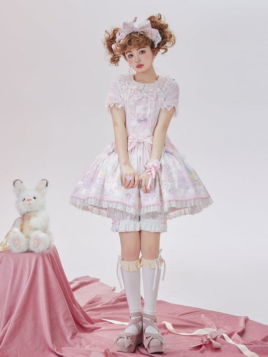 Unicorn and Dessert Pink Sweet Lolita Detachable Hooded Overall Dress
