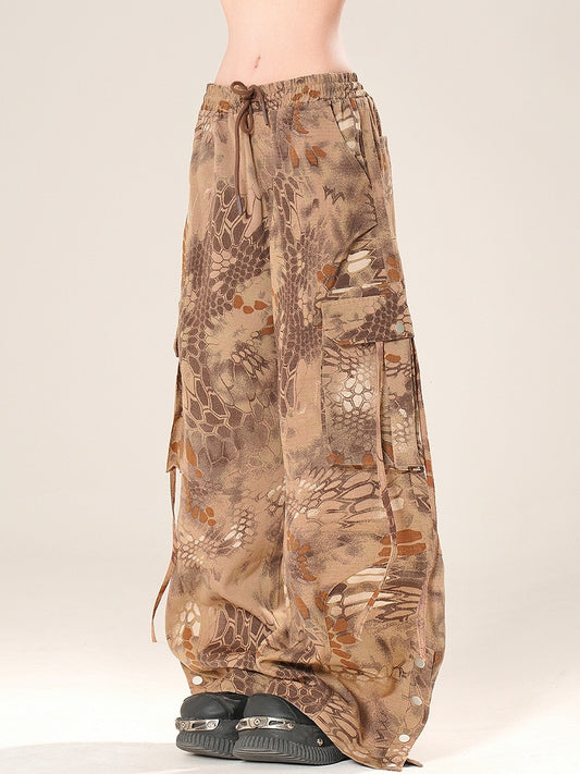 Snake Bittersweet Brown Wide-leg Print Pants Cargo Cut Scale