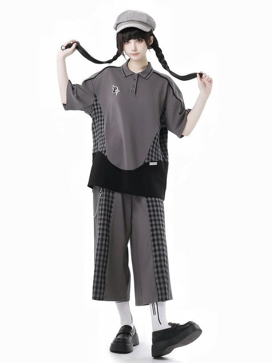 Dark Gray Lace Patches Details with Casual Pants Side Lace-up