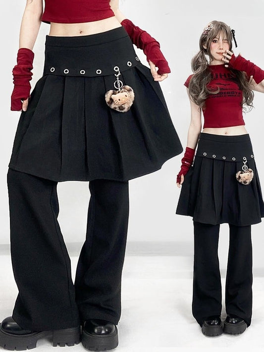 Bowknot Pants Wide-leg Black/White Blokettecore Print Cut