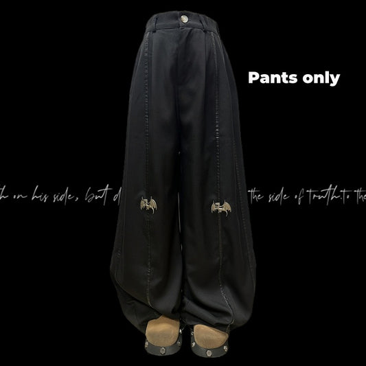 Length Floor Black Metal Dragon Knee Wide-Leg Pants
