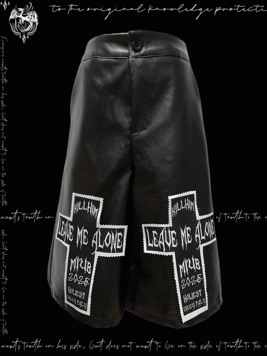 Rock Y2K Black Cross Applique Punk PU Wide-Leg Pants