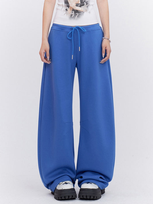 Blue Drawstring Waist Loose Straight-leg Sweatpants