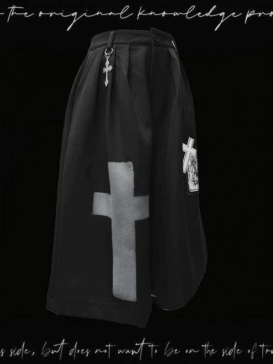 Hem Black Cross Print Wide-Leg Pants Asymmetrical