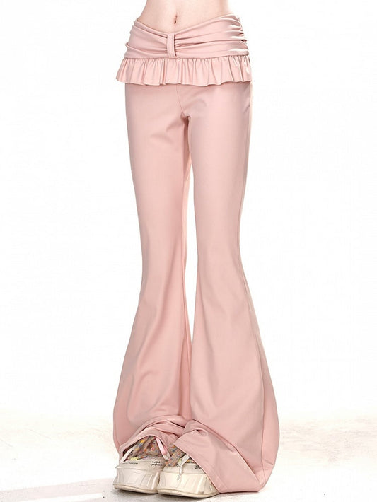 Straight-Leg Pants Red Drawstring Waist Stud Details