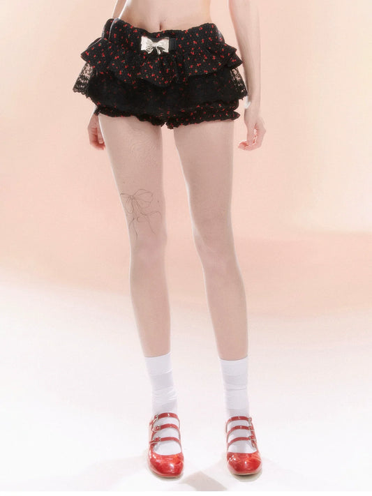 Black Wide-leg Pants with Big Bow Cargo Pockets