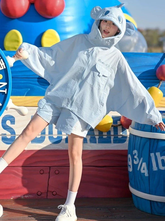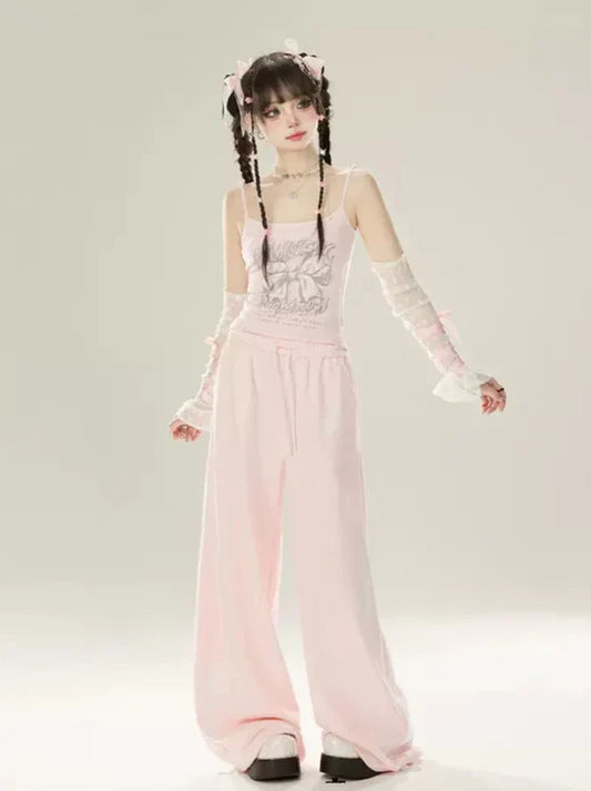 Zip Girly + Loose Butterfly Camisole Pants Jacket Ribbon Sweatshirt Hooded Pink