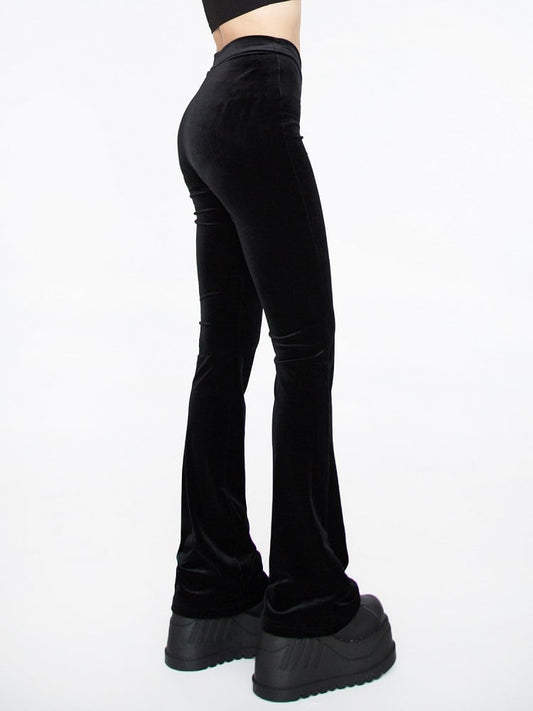 Black Velvet Pointed Waistband Waist Glamorous Flared Pants