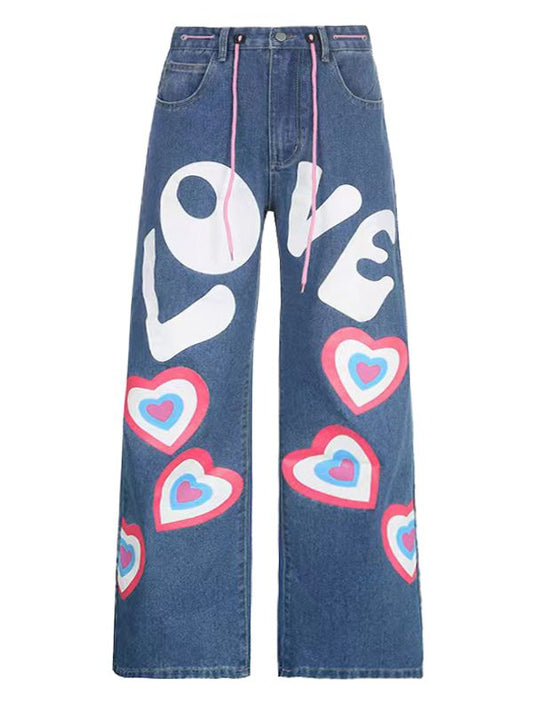 Sweetheart and Letter Straight-leg Cut Jeans
