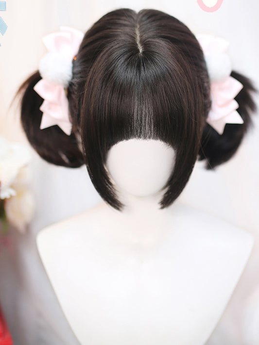 Black Tea Above Bust Length 40-45CM Straight Wig with Air Bangs