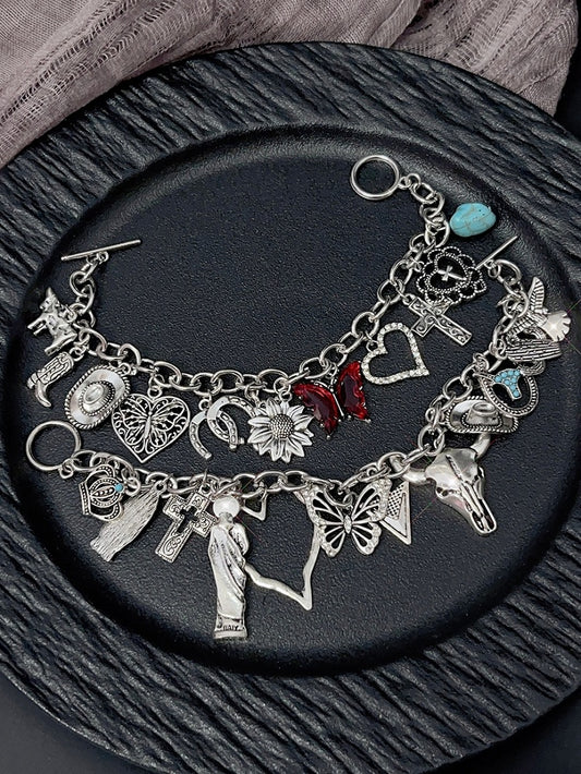 Bracelet Y2K Silver/Red And Butterfly Cross Heart Charm
