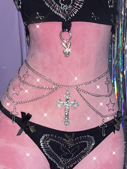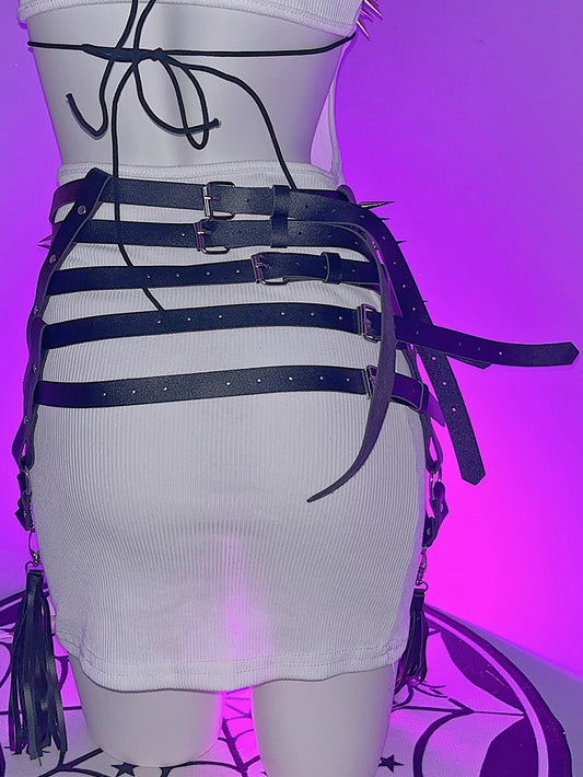 Charm Tassels Waist And Belt Studs Black Skeleton Y2K Decorated