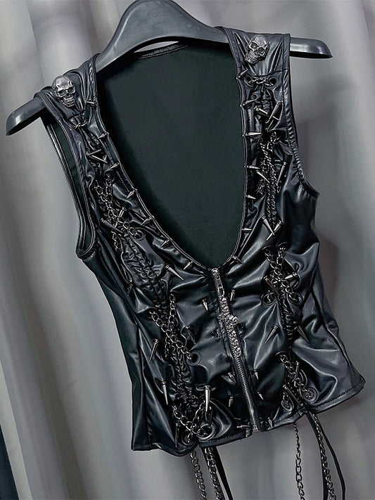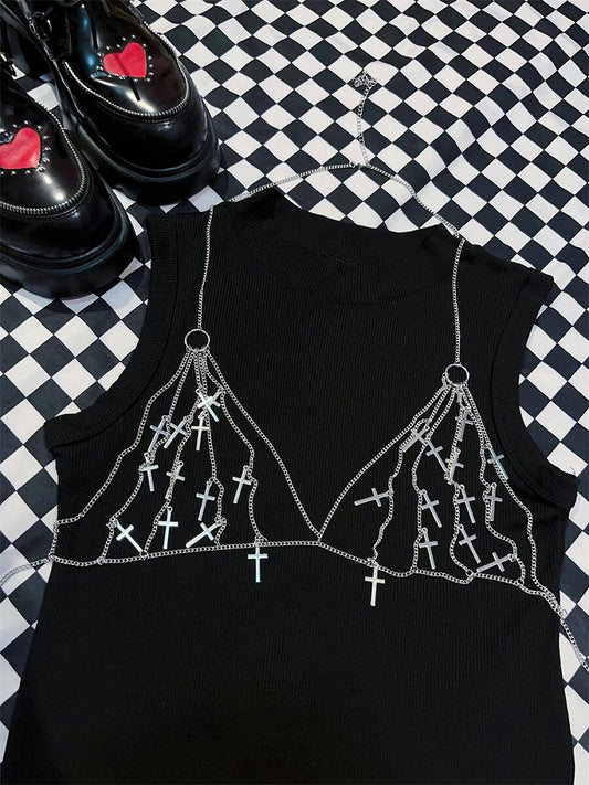And Black Closure Studs Decorated Zipper Cross Charm Skeleton Y2K
