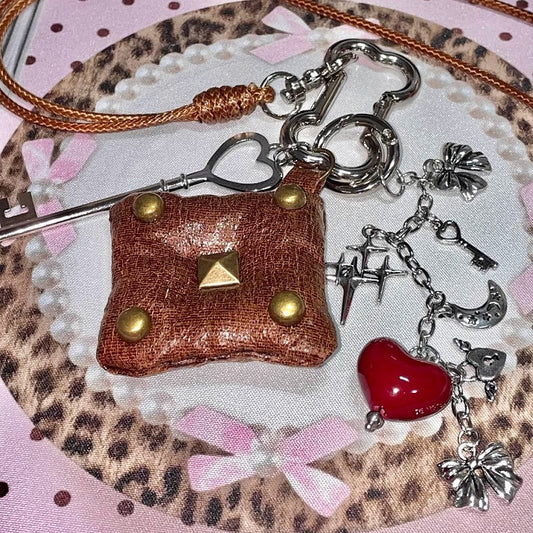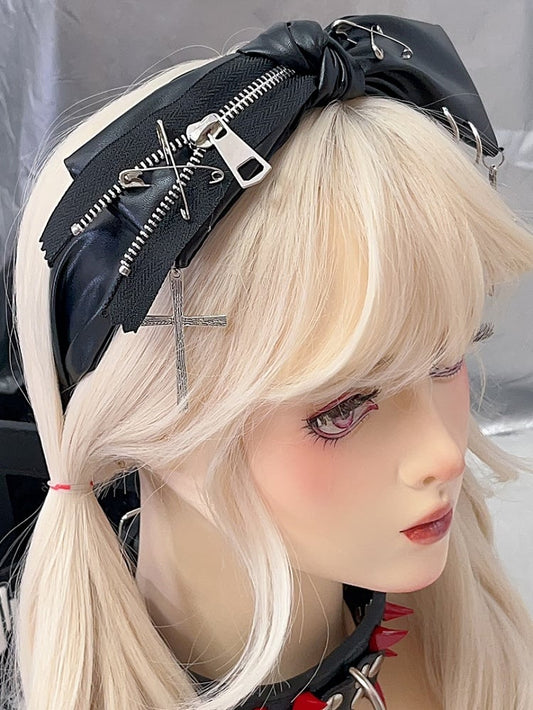 Zipper Bowknot Punk Pin Black Design Cross Decorated Charm PU Y2K
