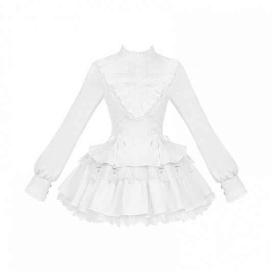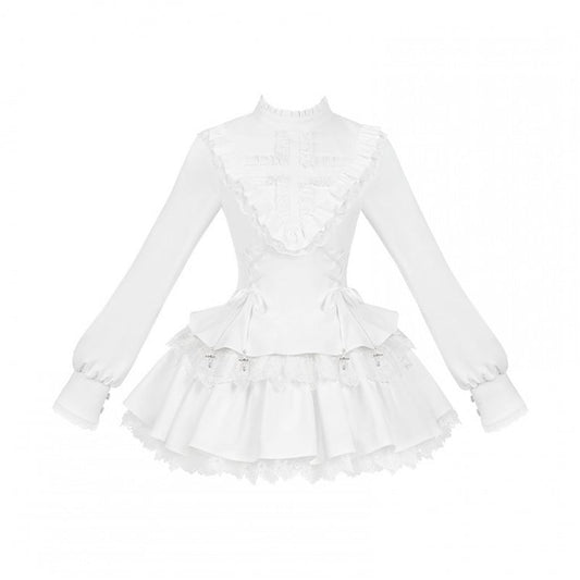 Straps Charm Dress Gothic White Ruffle Lolita Neckline Lace-up Cross