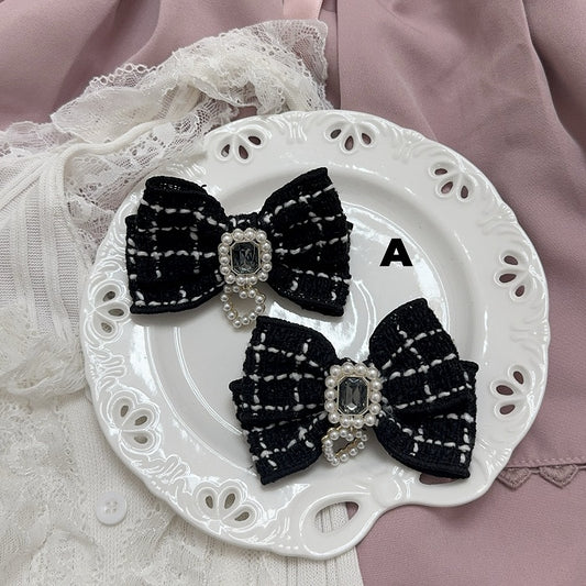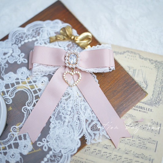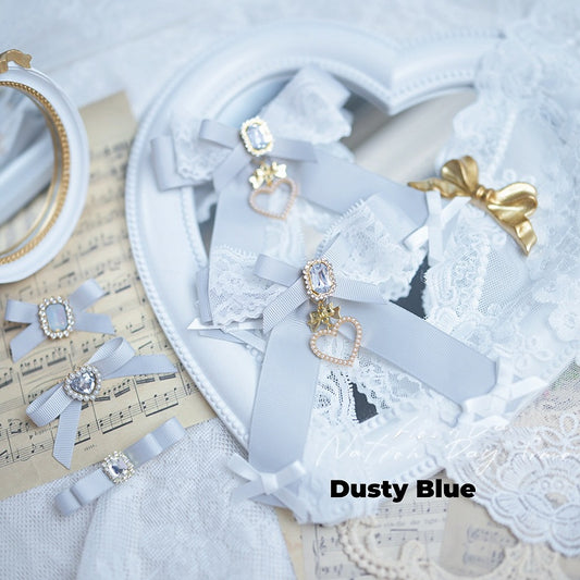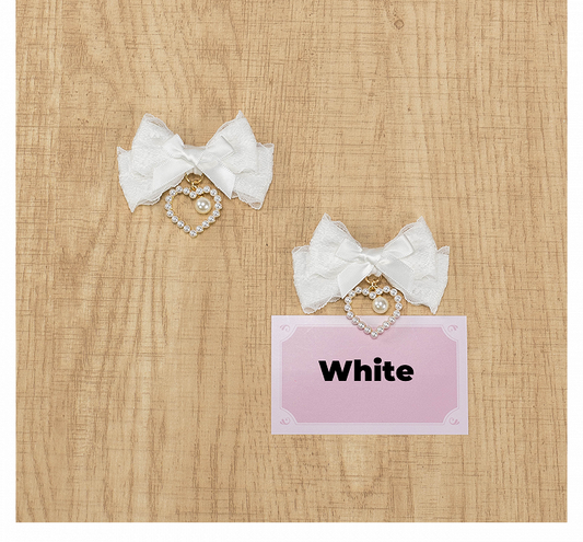 Beaded Heart Charm Jirai Kei Lace Bow Hairclips Dusty Blue/Dusty Pink/Blue/Black