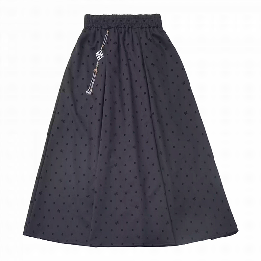 Polka-dot Skirt with Tassel Charm Black Elastic Waist Cheongsam Style