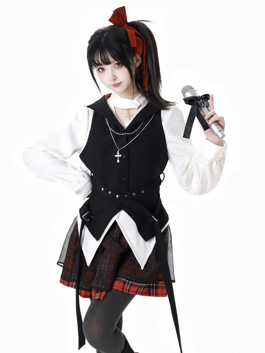 Strapless Top/Red Cross Tiered Skirt Gothic Red Cross Applique White Cropped Charms