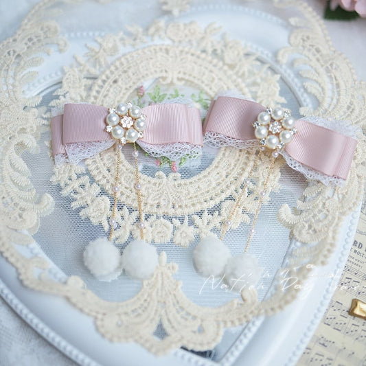Pompons Charm Jirai Kei Bow Hairclips Pink/Dusty Blue/Creamy Blue Dusty White/Light