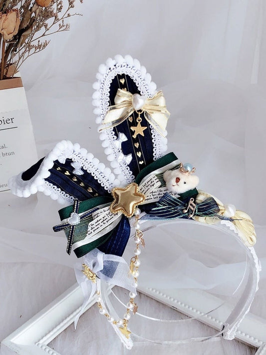 Beaded Bunny Star Green/BlackPink Plushie Bear And Decorated Ears KC Charm