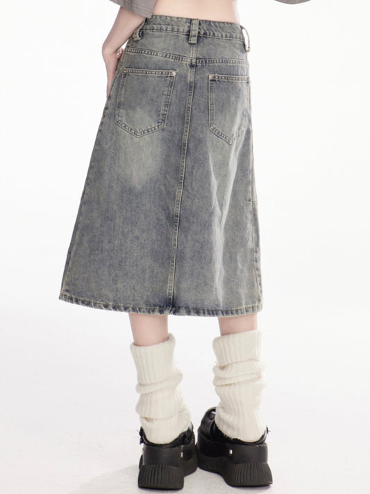Charm Free Blue Low Rise Faded Wash Distressed Denim Skirt with