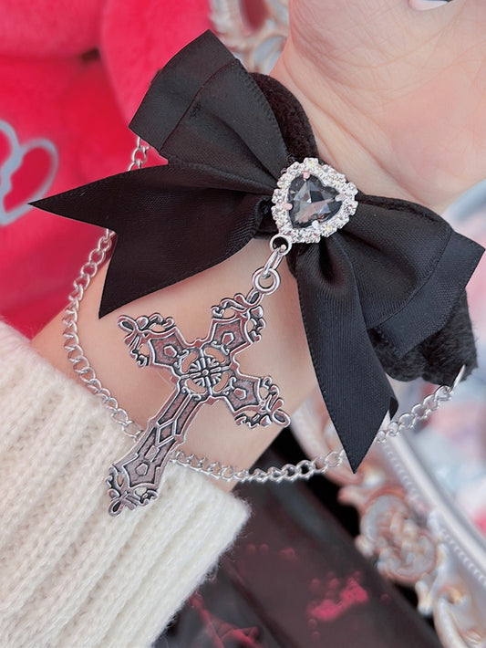 Jirai Bracelet Cross Bowknot White/Black Charm Kei