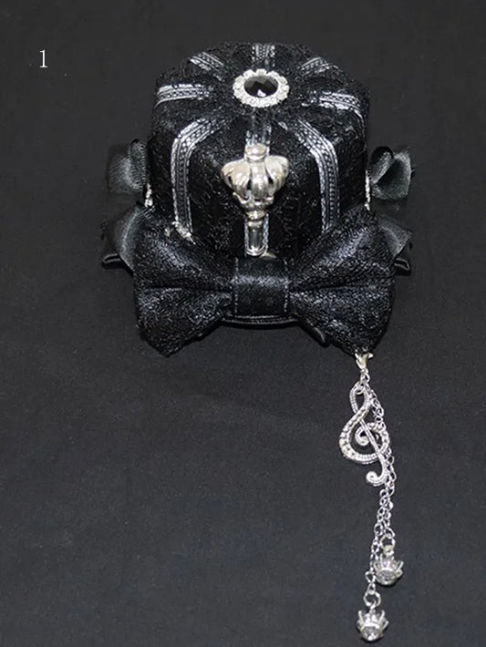 With Charm Crown Chain Black Mini Silver Hat Notes And Musical
