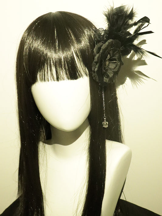 Crown Charm Design Black Feather Decorated Hairclip Floral