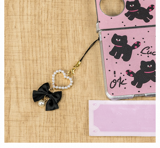 Jirai Kei Black Bow Beaded Sweetheart Charm