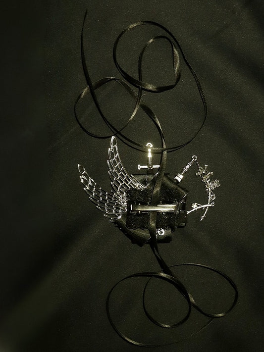 And BlackSilver Hairclip Wing Sword Skeleton Decorated Floral Charm
