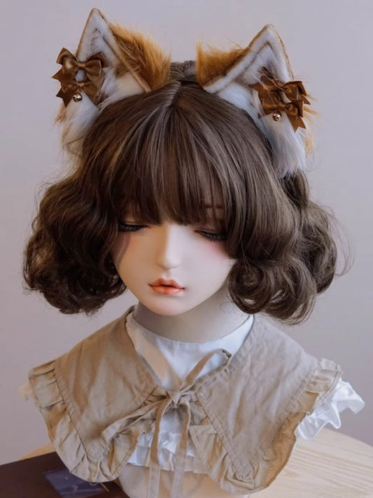 Bowknot Charm Ear Plush Brown Details Bell Cat KC