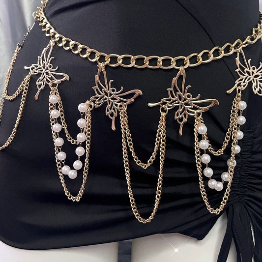 Butterfly Gold Beaded Decorated Chain Charm Waist