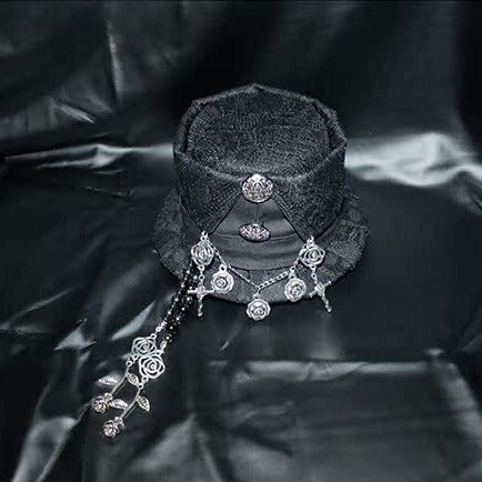 Mini Rosette Black/Red Charm Beaded Hat Design