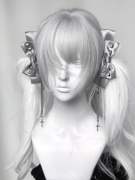 Bow Hairclips Black/Gray Punk Pentacle Kei Charm Studded Jirai